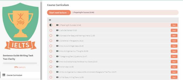 The course contains a series of online videos sharing best practices for each section. The writing section includes 8 essay corrections, where students receive personalised video feedback about how they can improve their IELTS writing. Students will have email support available to them every step of the way.