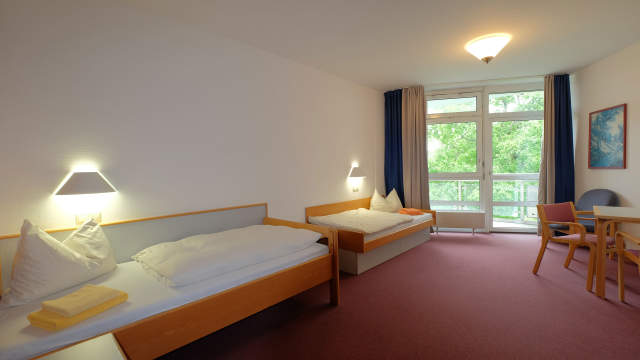 Nossa escola fica em um moderno complexo de edifícios à beira de um magnífico parque. O centro da cidade de Bad Schussenried fica a uma curta distância de aprox. 5 minutos. A escola do curso está em uma escola residencial, ou seja, as salas de aula estão localizadas dentro do mesmo complexo de edifícios que os dormitórios estudantis.