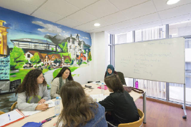 Oferecemos quatro níveis diferentes com um máximo de nove pessoas por grupo. As aulas duram 45 minutos. Nas duas primeiras, você aprenderá novas estruturas, fará exercícios, corrigirá sua lição de casa e trabalhará com o livro de texto. Na terceira e quarta aula, você terá outro professor focando em suas habilidades orais. Você vai praticar o que aprendeu antes, discutir, relatar e fazer exercícios de compreensão. Idioma é comunicação, isso é muito importante para nós.