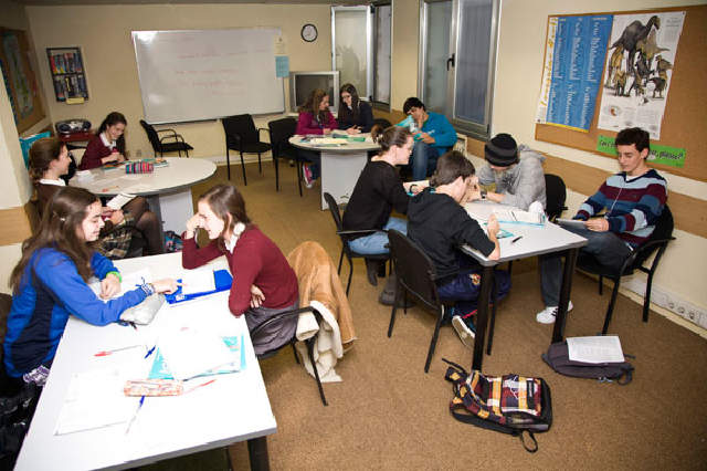 Nossa escola, localizada no centro da cidade, tem 6 salas de aula, uma biblioteca muito extensa com recursos que nossos alunos podem usar para melhorar suas habilidades: autores renomados, filmes, livros de habilidades e de exames e outros.