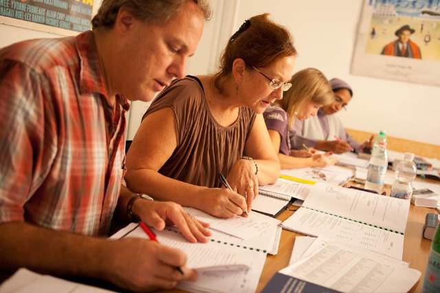 Na chegada, os alunos fazem um teste e são colocados em turmas de acordo com seus níveis.